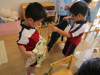 ”どうやって着るの~?”と苦戦しながら